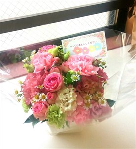 会社からもらった快気祝いの花を見ると癒されます。