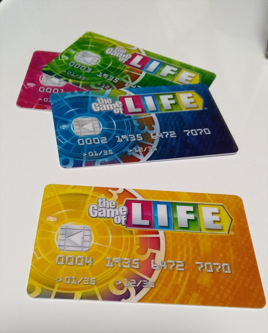 4人までしかできないのが難点だけど、自分の色のクレジットカードで財産を管理する。