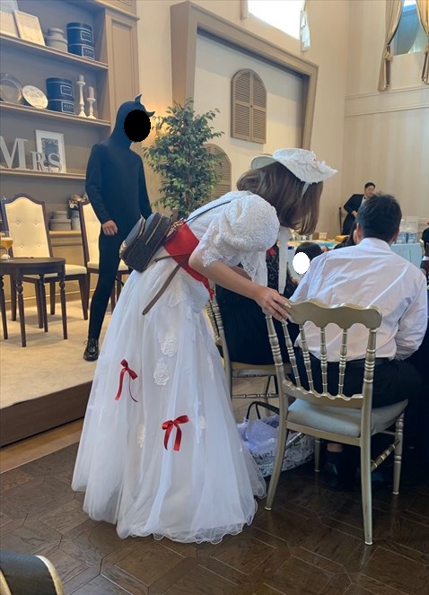 奥は新婦父の子分を想像させる衣装の新郎さんw