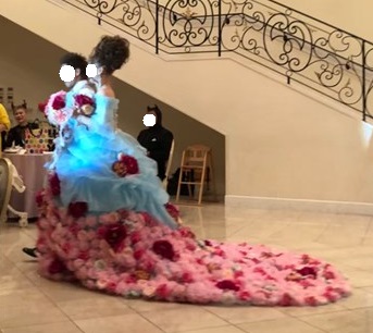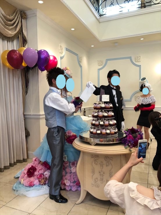 お色直し後の水色ドレス+お花たくさんも自分でデザインだって。