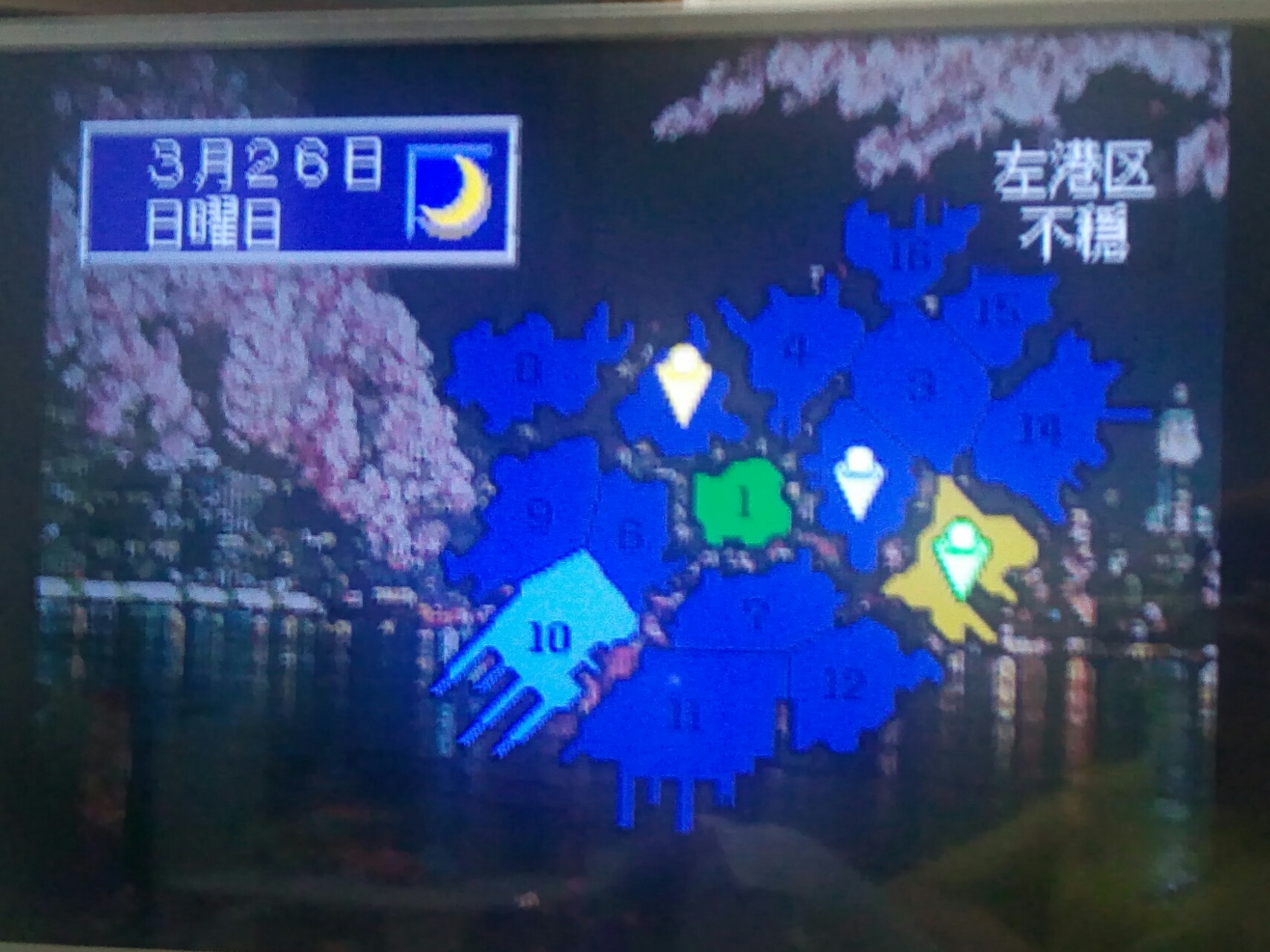 青色が自社管轄(区民から支持を得ている)。16区中14区を管轄にできましたー。