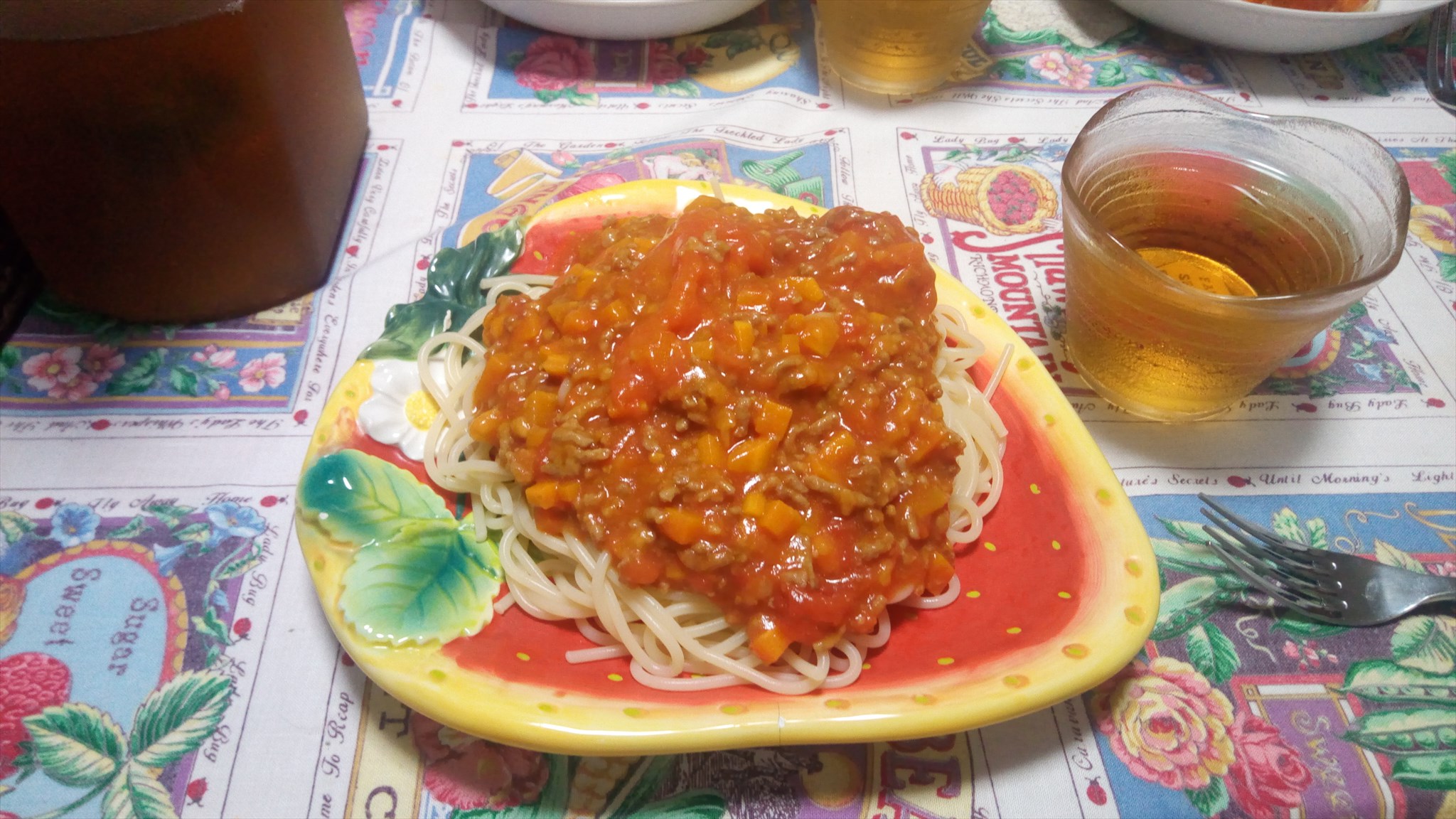 ボロボロこぼれるので前かがみで食べるマトくん。笑