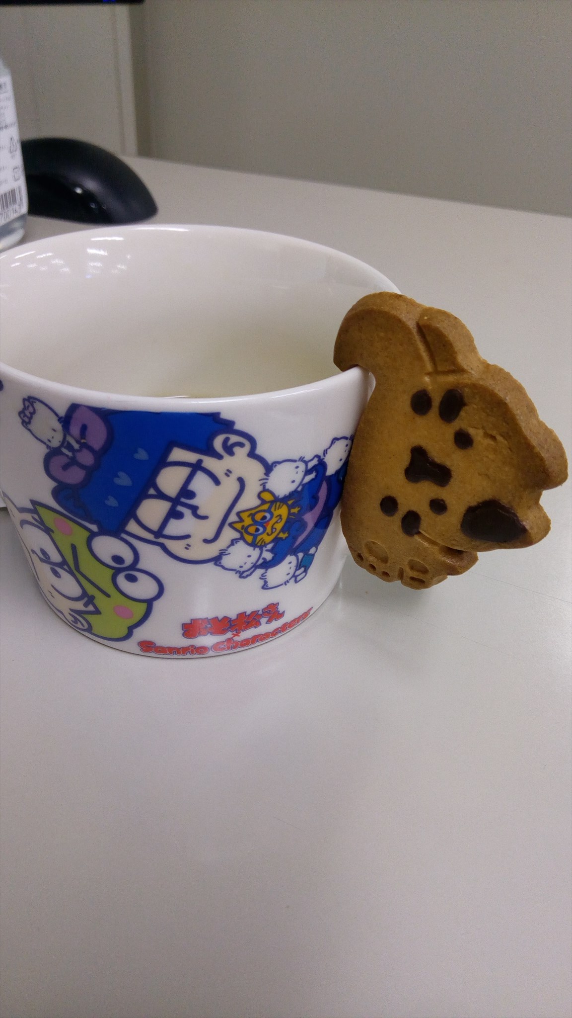 他の社員さんからお土産でいただいたネコクッキーがぶらさがってます。